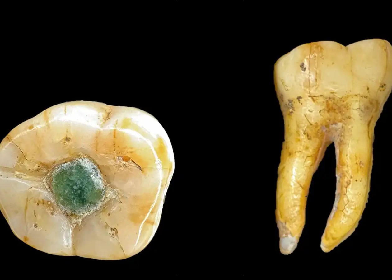 Вчені припускають, що вставка могла виконувати функцію своєрідної пломби. Ймовірно, спочатку було видалено уражені карієсом тканини, після чого порожнину заповнили каменем, закріпивши його природними смолами з антибактеріальними властивостями.