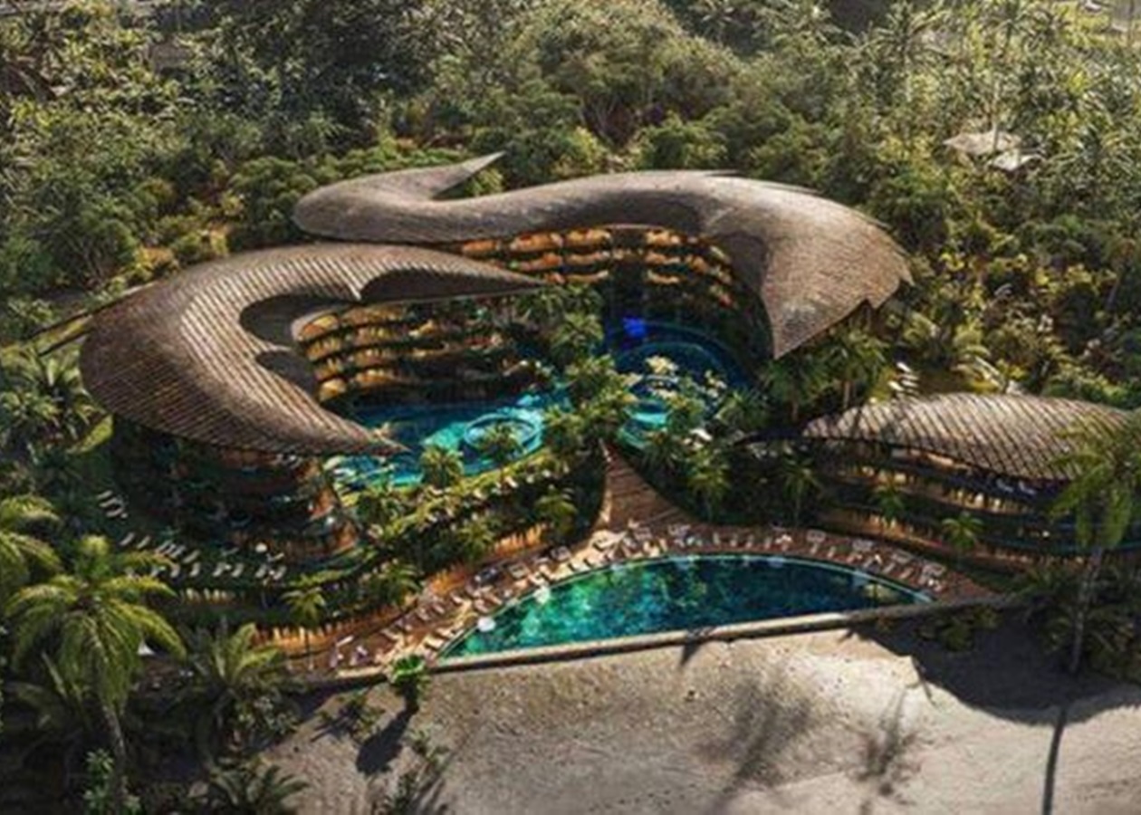 Архітектурну концепцією готелю в формі дракона, тісно пов’язану з прибережним ландшафтом Балі, було розроблено відомим британським архітектором Джоном Доузом.